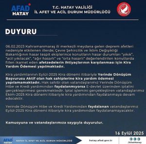 HATAY AFAD’DAN KİRA YARDIMI İLE İLGİLİ AÇIKLAMA YAPILDI